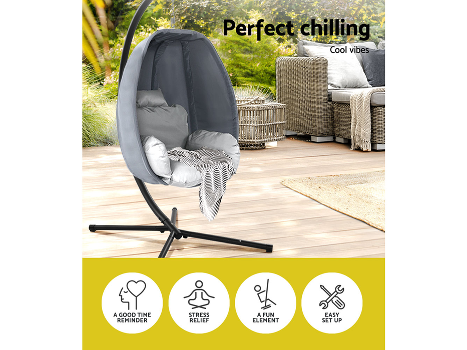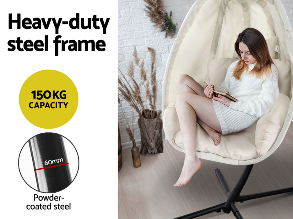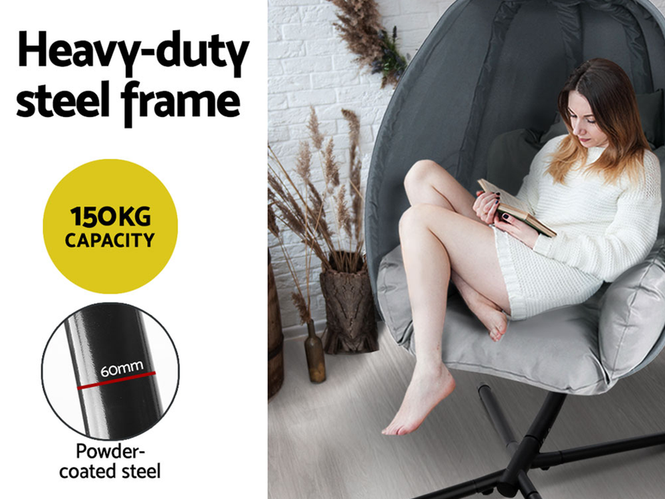 Otherwise known as the hanging egg chair, our Micah Hanging Swing Egg Chair is the epitome of ultimate relaxation with a cool and exotic vibe. With its weather and UV-resistant polyester fabric, the pod has a foldable space-saving design and is well hung on a steel pole for stability and strength. The powder-coated steel frame finish ensures that corrosion will never be an issue while the soft, inviting cushion offers plush comfort for day dreamers and leisure seekers alike. You can really take in the views with the chair as it can rotate 360°. Best of all, it has ample space for relaxation with a weight capacity of up to 150kg.