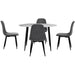 Features Industrial-style dining table Thick particle board Marble finish tabletop Sturdy and durable Soft velvet fabric Solid iron chair legs Wide comfortable seat Versatile use Easy assembly