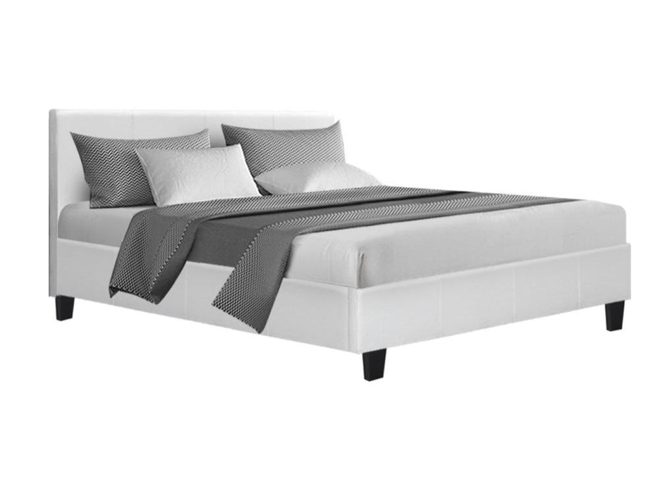 Give your bed a touch of modernistic appeal with our Neo Bed Frame. Wrapped in premium faux linen fabric or PVC leather, the bed frame is at once smooth to the touch and luxurious all around. The bedhead provides ample space for a relaxing back rest when you need to sit up on the bed to read, surf the net, or catch a movie on your device. You will surely appreciate the high-density foam that fills the bedhead and every other inch of the bed frame for a well-padded look and feel. Within the frame, a highly flexible wooden arched slat base allows the bed to flex properly so that a person who lies on the bed can move around without unduly disturbing the other. Not least, the sturdy wooden frame is also held together by heavy-duty metal connectors so that you never have to worry about the stability or durability of the bed frame. If elegant sleep is what you are after, look no further than the Neo Bed Frame to make your dreams come true.