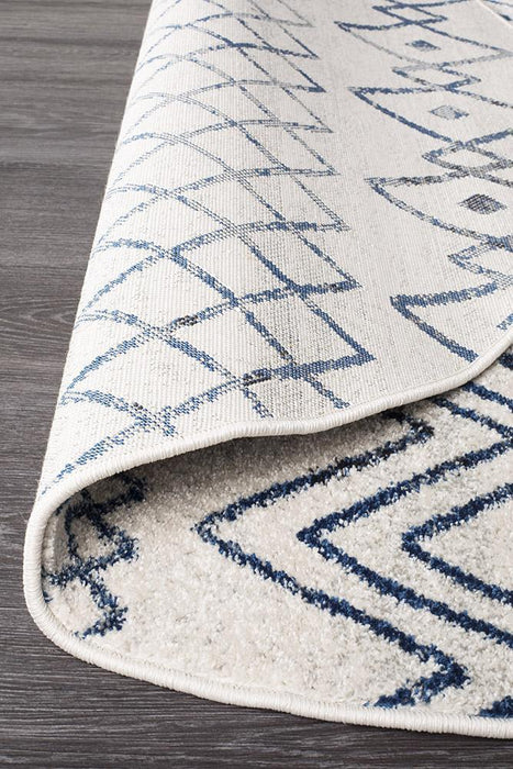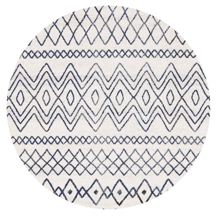 Oasis Nadia White Blue Rustic Tribal Round Rug