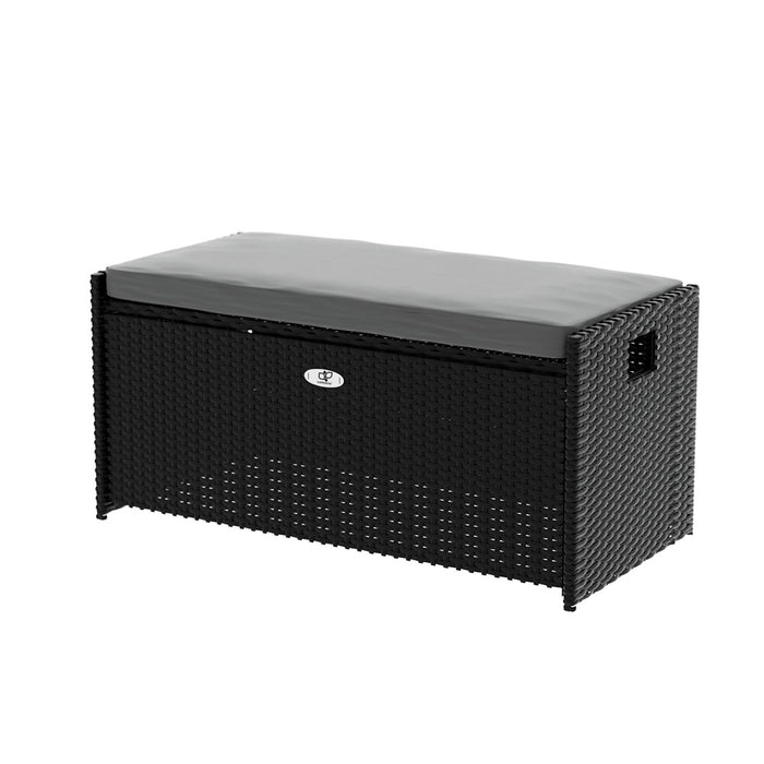 Outdoor Storage Bench Box Wicker Garden Sheds Tools Cushion Patio Furniture Black