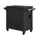 Introducing our 3-in-1 serving cart with wheels that is perfect for all your outdoor gatherings! Made with durable polypropylene material, this cart is lightweight yet tough and resistant to impact. With its imitation wood texture design, it brings a touch of natural charm to your outdoor living space. The top surface can be used as a prep area while the container underneath can be filled with ice to keep drinks cool for several hours. The convenient design features easy-to-lift top lids, side spice rack, built-in bottle opener, and bottom storage compartment for all your needs. Moving the cart is effortless with its 4 robust wheels, 2 of which are lockable. Cleaning is a breeze with the external drainage tube on the back. Enjoy the convenience of having everything you need in one convenient cart!