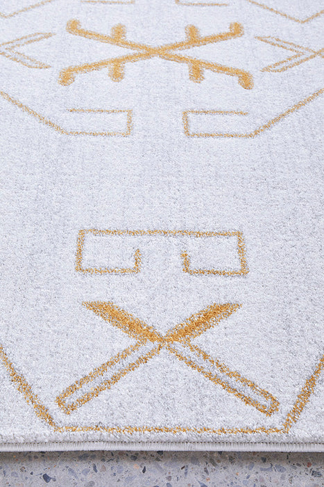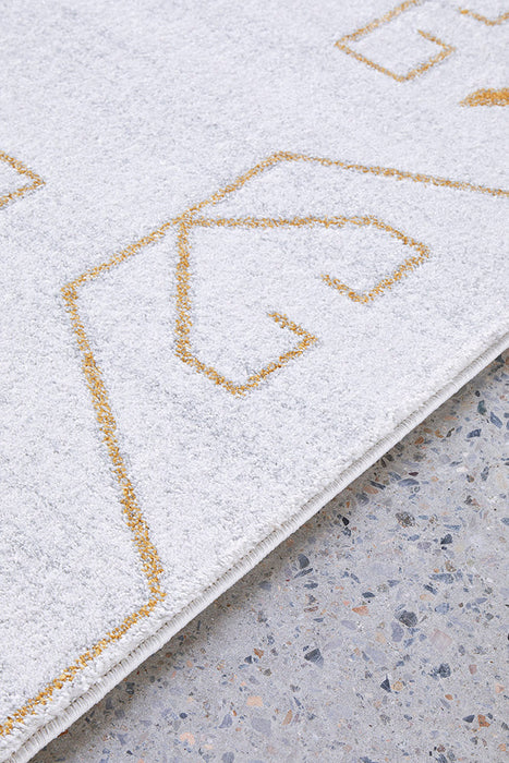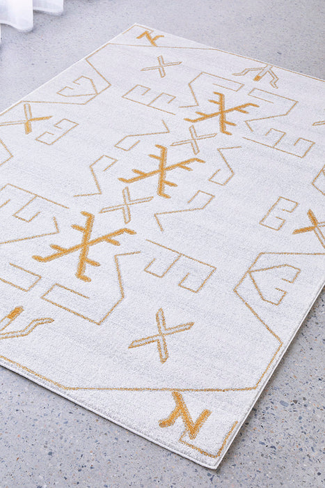 A design compiled of symmetry pattern and geometric shapes renders the PARADISE CALA GOLD as a pillar of modern fabrication. This Turkish power loomed rug offers an overall cream colour with essential gold angles. Centre room placement is indispensable for a living space as it surely to capture the focus of those who are caught in the gravity of this rug.