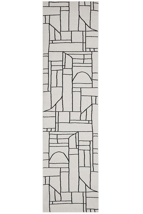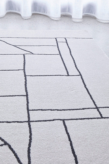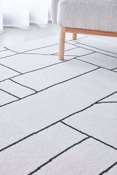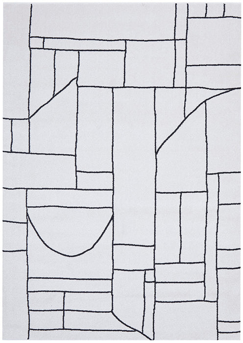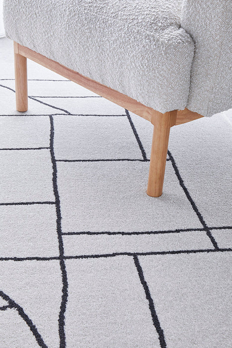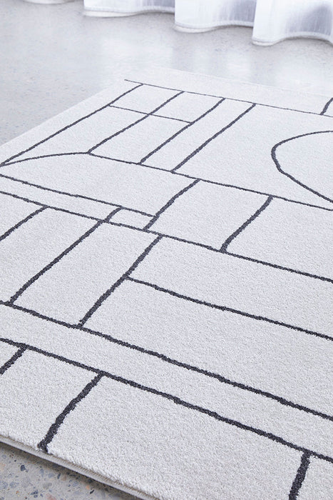 Rich with a modern design fixture the PARADISE FLEUR is a must have rug for any living room setting. Power loomed in Turkey, this rug features an off-white background underneath a black geometric pattern and a 10 mm pile, soft texture finish to make it a diverse addition to any living space. The design features a range of geometrical shapes, however the accompanying curved lines create a balanced pattern.