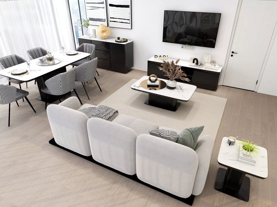 Elevate your home with the Contemporary 10-Piece Dining & Living Room Package — a harmonious blend of modern elegance and everyday functionality. Designed for those who appreciate bold silhouettes and refined textures, this collection transforms open-plan spaces into sophisticated sanctuaries. From the sleek 180cm dining table to the matching coffee and lamp tables, every piece showcases a strong black base complemented by crisp white surfaces, exuding minimalistic charm and enduring style.