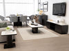- Matching coffee and lamp tables complete the space with balance and proportion.