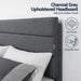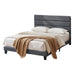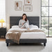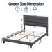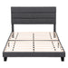 Queen Bed Frame Upholstered Platform Base with Geometric Headboard Charcoal Grey Linen Wood Slats for Modern Bedroom Furniture Home Decor
