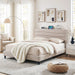 Queen Bed Frame with Storage Adjustable Headboard Platform Base Linen Fabric Charging Ports
