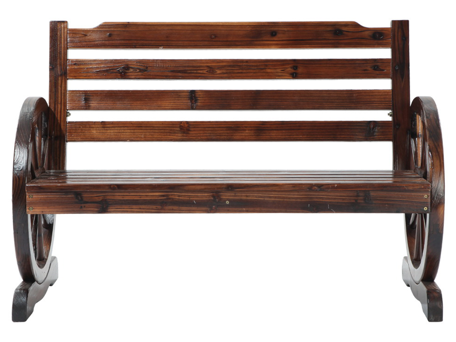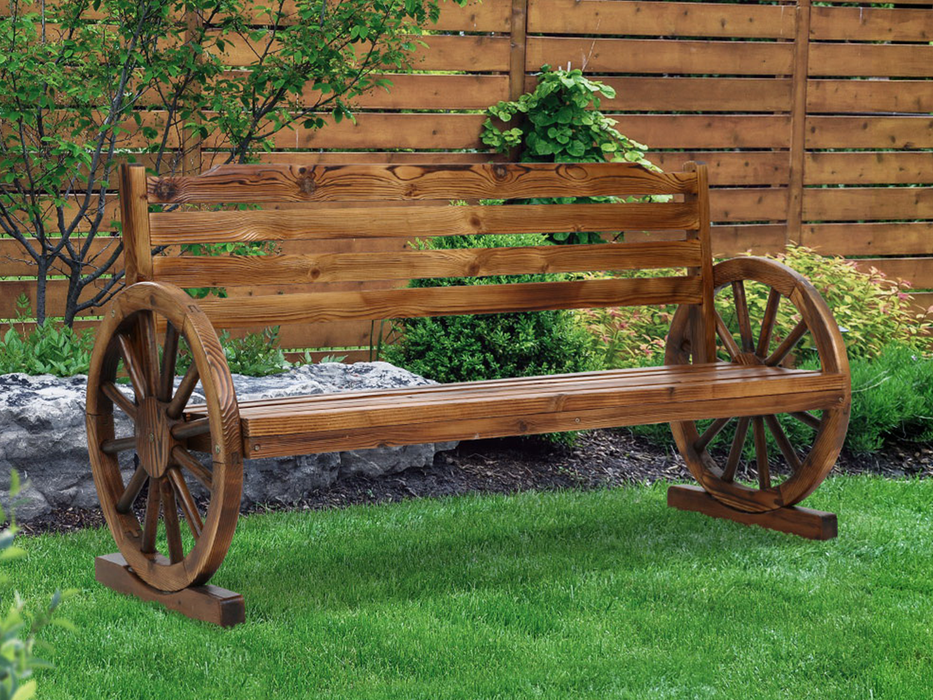 Time to have a seat on the wild wild west side. That's right, our Wagon Wheels Bench definitely looks the part to spice up your garden and backyard with some country soul.