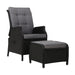Now you can really sit back and chill in the outdoors with the Wicker Recliner Set. Comprising an oversized recliner and matching ottoman, the outdoor ensemble is everything you need for relaxation in elegant wicker style. The set is made of UV-resistant and weather-resistant PE wicker so that you never have to worry about rust, corrosion or weathering issues. The heavy-duty powder-coated steel frame is sturdy and hardy and will stand up to robust use easily. More importantly, the recliner has an adjustable backrest to suit your angle of rest. Better still, the seat cushion is made of high-density foam for ultra-comfort while the zipped cover is weather-resistant, removable and washable. Not least, the useful ottoman is just perfect for putting your feet up. Yes, it is indeed paradise under the sun, moon and stars. Have it outdoors or indoors, the wicker recliner set is equally at home with its exquisite design and unique presence for any home décor enthusiast.