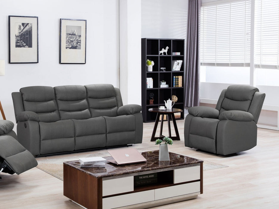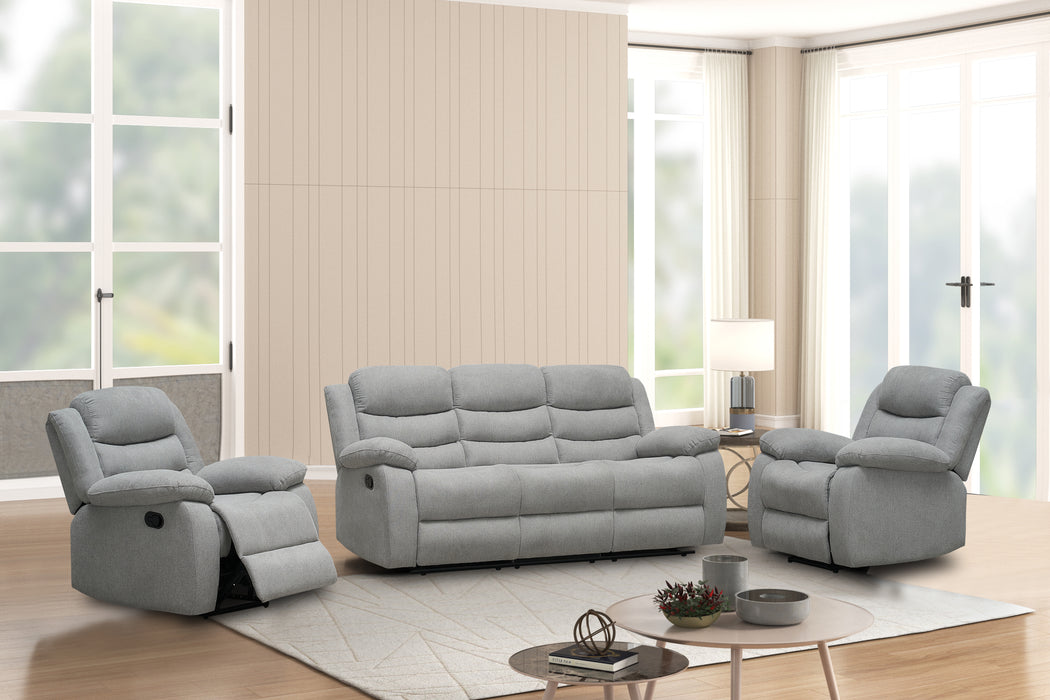 Elevate your living space with the Sandie Fabric Recliner Lounge, a harmonious blend of plush comfort, timeless design, and practical luxury. Cloaked in a soft, durable grey polyester fabric, this inviting suite brings a sense of relaxed sophistication to any modern Australian home. Whether you're winding down after a long day or hosting guests for movie night, the Sandie offers the perfect retreat with its deep-cushioned seats and effortless reclining functionality.