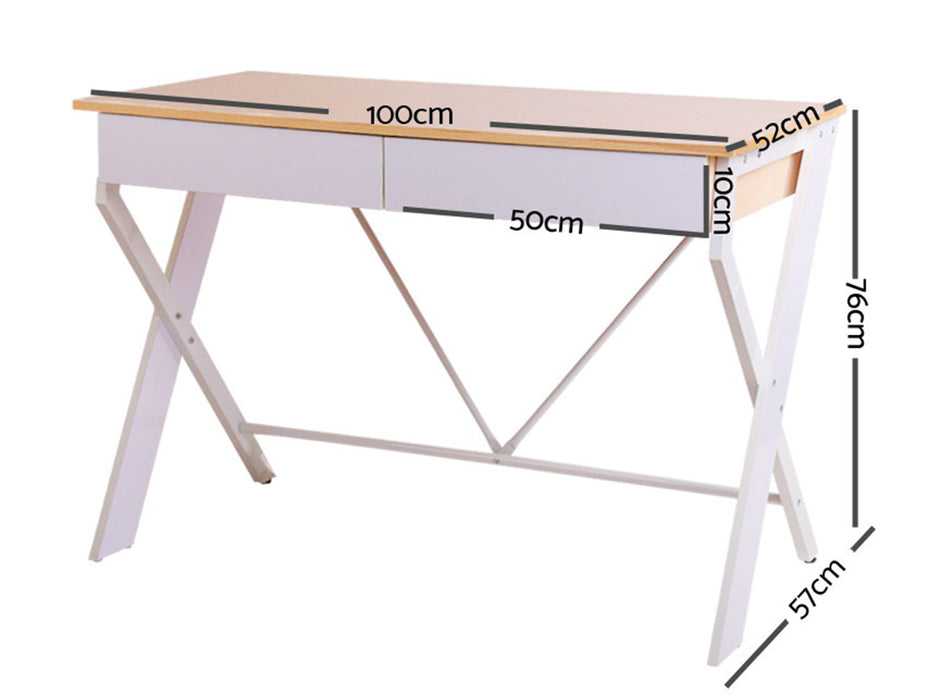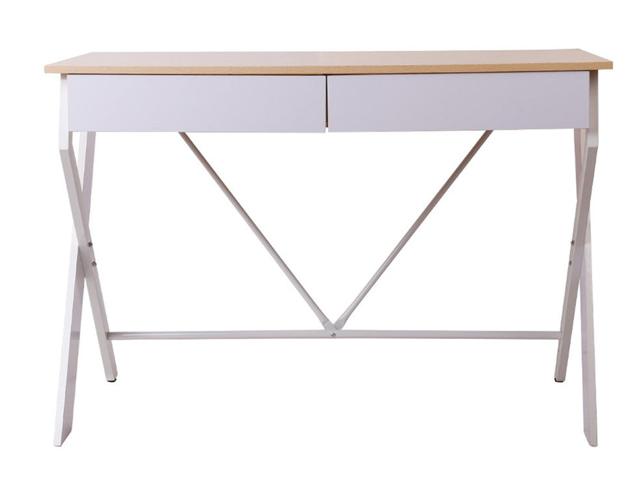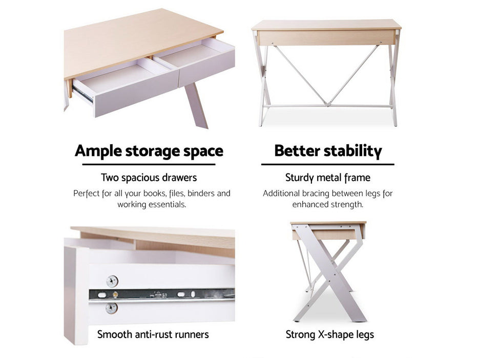 The exceptionally thick particle board with melamine veneer wooden table top gives not only a smooth feel but good durability and easy maintenance. Two storage drawers with concealed handles provide ample storage space for all your work essentials and more. Not least, the U-shape power-coated steel frame features an X-brace to ensure better load-carrying stability and facing up to robust use.