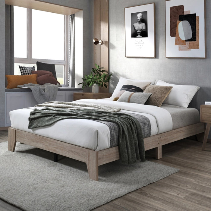 The Scandi Bed Base features a clean, rustic design with muted natural tones, crafted to suit a wide range of bedroom décors. Lightweight yet durable, this base is constructed from MDF, particle board, and LVL for long-lasting strength. It includes sturdy centre support beams and evenly spaced slats to enhance mattress stability and airflow. Available in Double and Queen sizes, it offers simple assembly and a low-profile design that instantly modernises your space.
