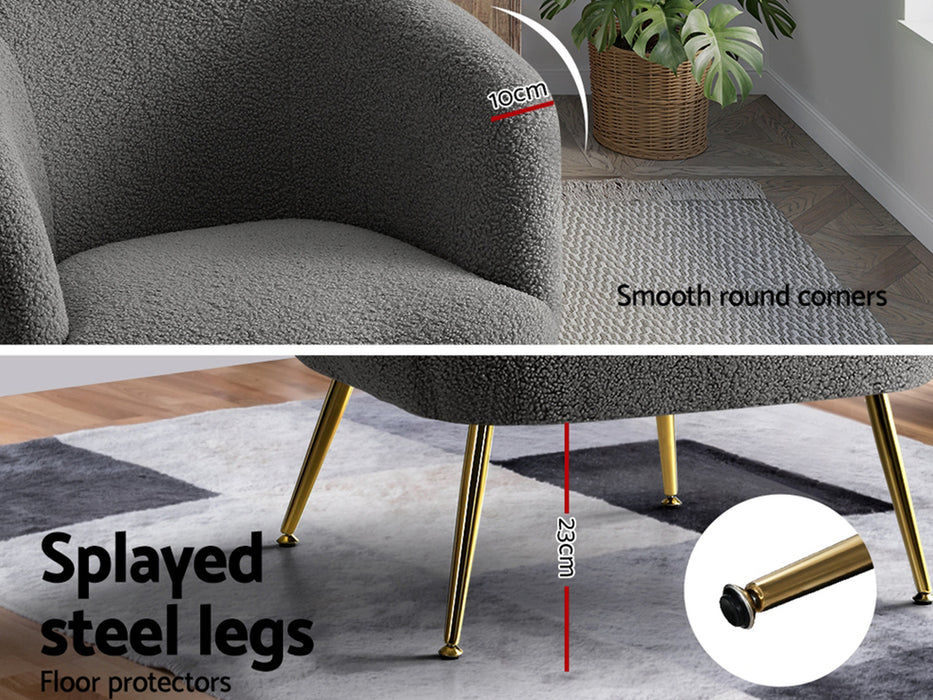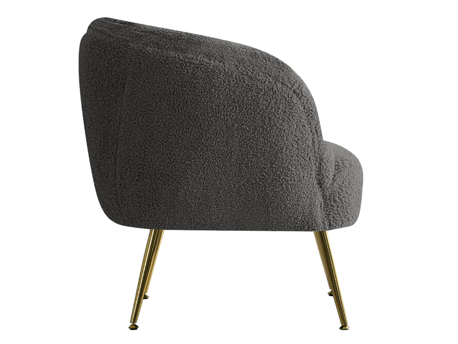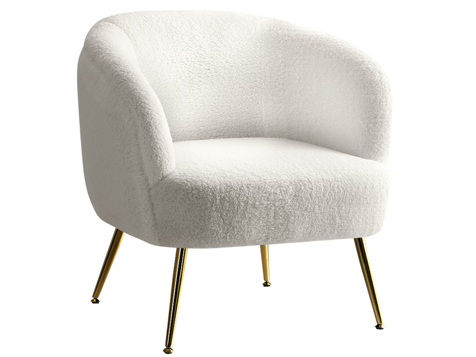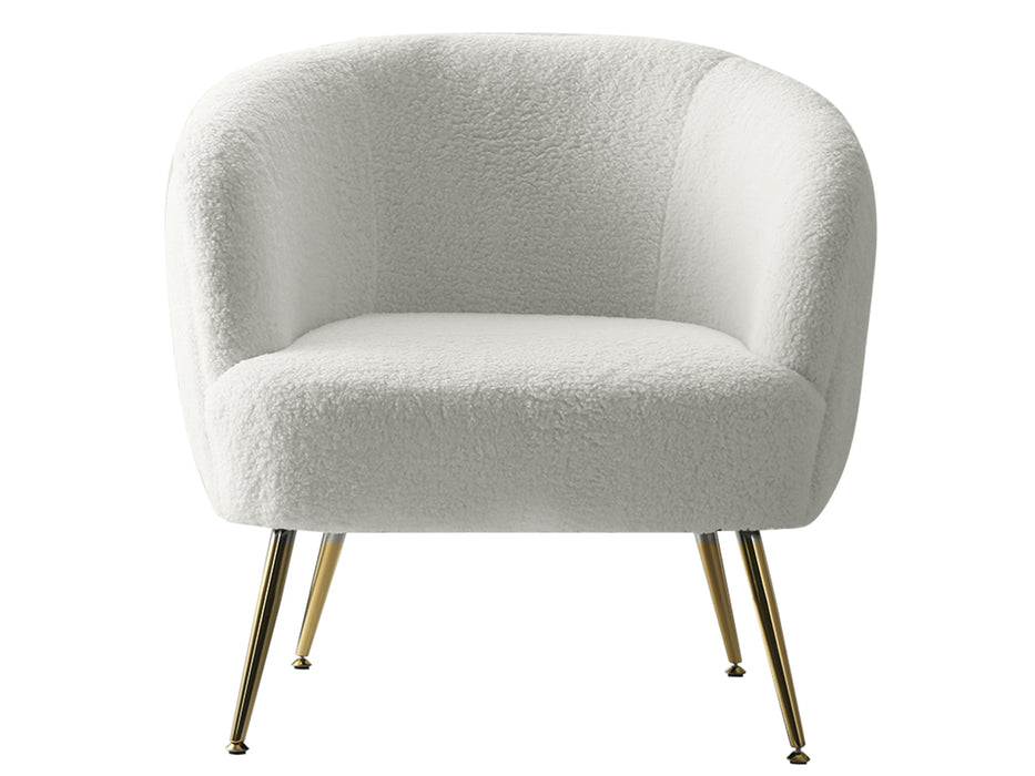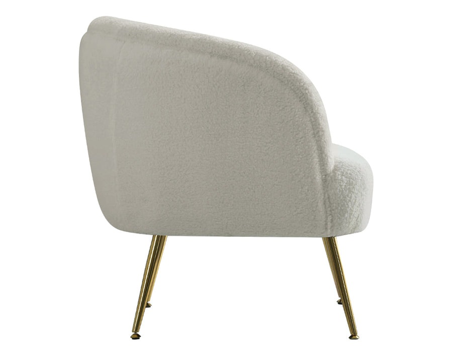 Our Shreya Boucle Armchair is upholstered in soft polyester sherpa fabric that epitomises luxury with its smooth appearance and adds a cosy and relaxing feel to your space. Its curvy winged backrest creates an enveloping feel that makes you feel snuggled. Plus, the golden splayed steel legs with floor protectors will offer optimum stability and protection to your floors and add a luxurious charm to your space with its gorgeous presence. Our Shreya Boucle Armchair is super comfortable to relax on and possess stylish, elegant, and contemporary good looks, making it a must-have piece of furniture for your home.
