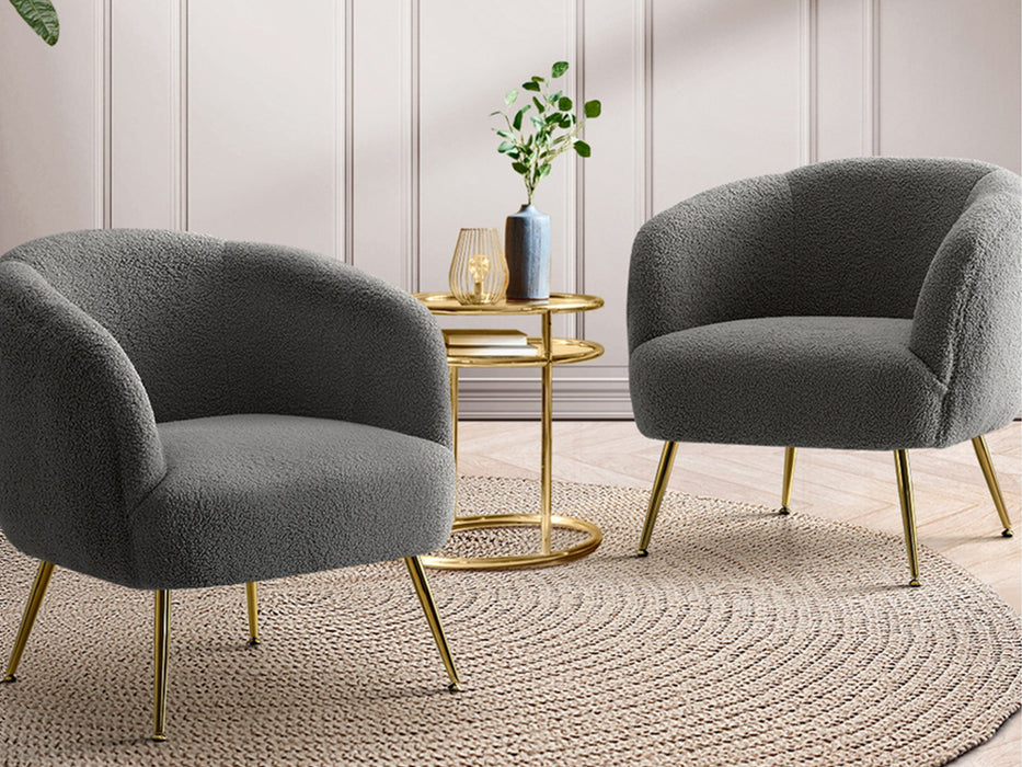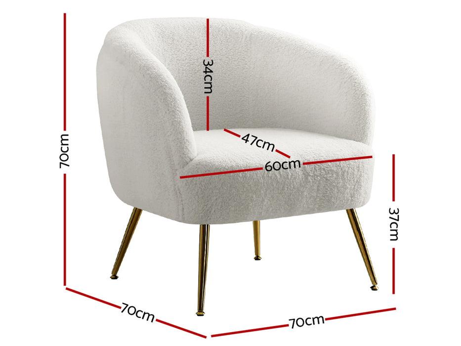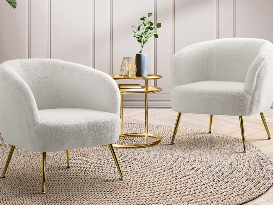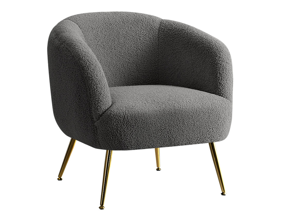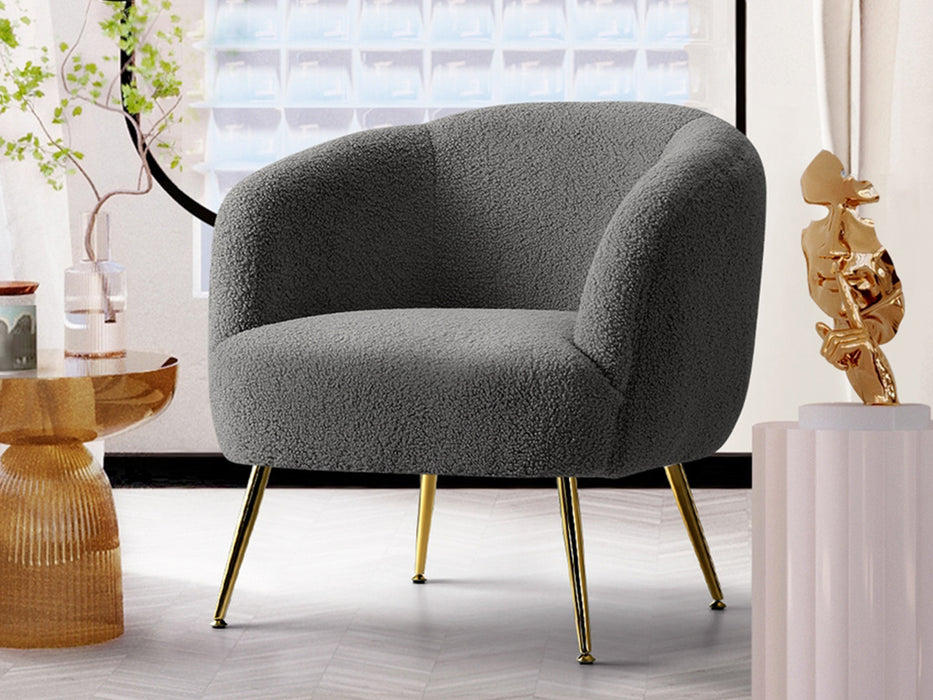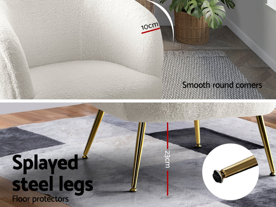 Our Shreya Boucle Armchair is upholstered in soft polyester sherpa fabric that epitomises luxury with its smooth appearance and adds a cosy and relaxing feel to your space. Its curvy winged backrest creates an enveloping feel that makes you feel snuggled. Plus, the golden splayed steel legs with floor protectors will offer optimum stability and protection to your floors and add a luxurious charm to your space with its gorgeous presence. Our Shreya Boucle Armchair is super comfortable to relax on and possess stylish, elegant, and contemporary good looks, making it a must-have piece of furniture for your home.