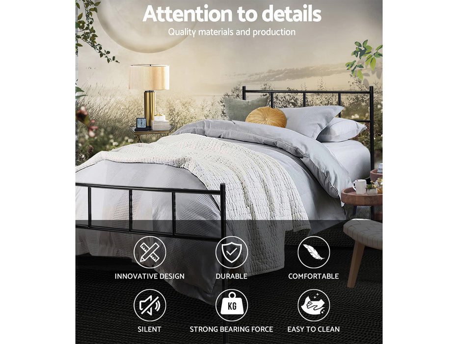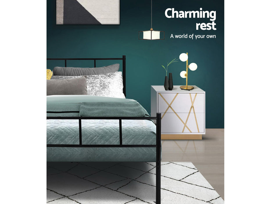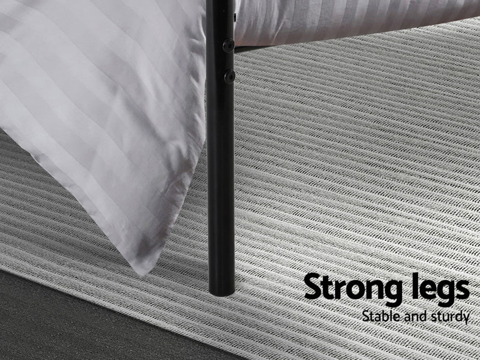 Sleek and elegantly finished in black. Our Soul Metal Bed is truly a stylish addition to any bedroom. Simple in design, the bed frame is constructed in sturdy steel for durability and strength. The black powder-coating lends a sophisticated yet neutral look that will go well with any room decoration. Across the frame, evenly spaced metal tube supports provide good weight distribution as well as ensuring that the mattress stays in place even with every twist and turn of your sleep. Underneath, central support beams further steady the bed under robust use. Not least, you will also find plenty of storage space underneath the bed for those who are space-challenged with their bedrooms. Designed to fit standard size mattresses effortlessly, our metal bed frame is guaranteed to give you pleasant dreams with every sleep.
