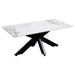 Elevate your interior with the Sovereign Collection – a masterclass in refined design and contemporary elegance. Featuring a stunning sintered stone top with natural marble veining, each piece radiates modern luxury while maintaining timeless appeal. From coffee tables to extendable dining tables, this collection blends durability with high-end aesthetics, making it the perfect choice for style-conscious homeowners. The bold, sculptural black powder-coated base creates a striking contrast against the smooth, glossy surface – a statement of strength and grace in equal measure.