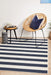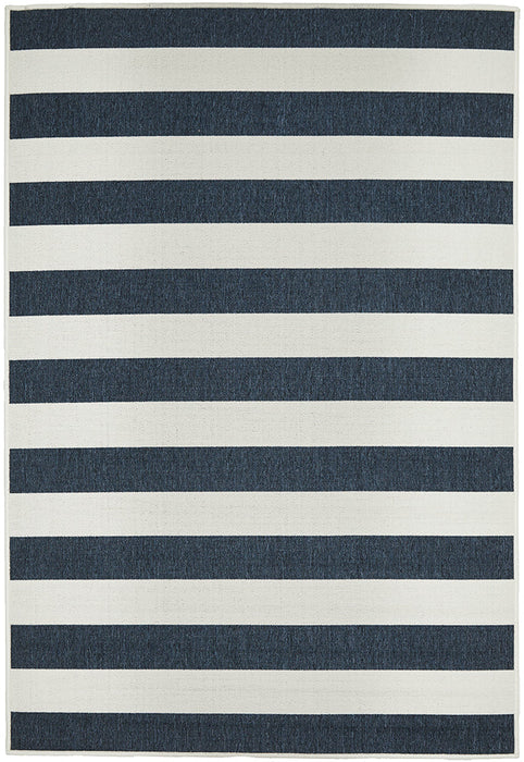 Navy and white stripes create a bit of nautical flair, bringing a coastal look instantly. This easy-care collection is designed to be used outdoors as well as indoors, these rugs are water resistant and will add an element of fun to any space. This short, easy to clean pile made from durable polypropylene and is power loomed.