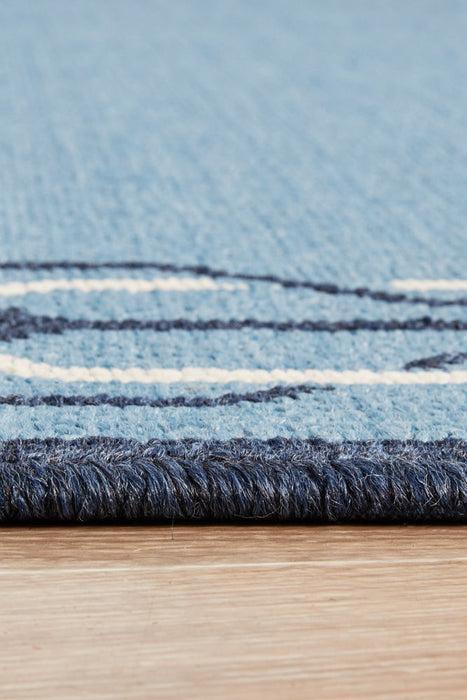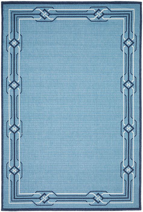 Adorned with a navy and white border, this simple but elegant design offers effortless style. This easy-care collection is designed to be used outdoors as well as indoors, these rugs are water resistant and will add an element of fun to any space. This short, easy to clean pile made from durable polypropylene and is power loomed.
