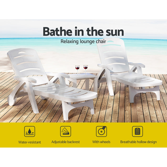 Sun Lounger Folding Chaise Lounge Chair Wheels Patio Outdoor Furniture