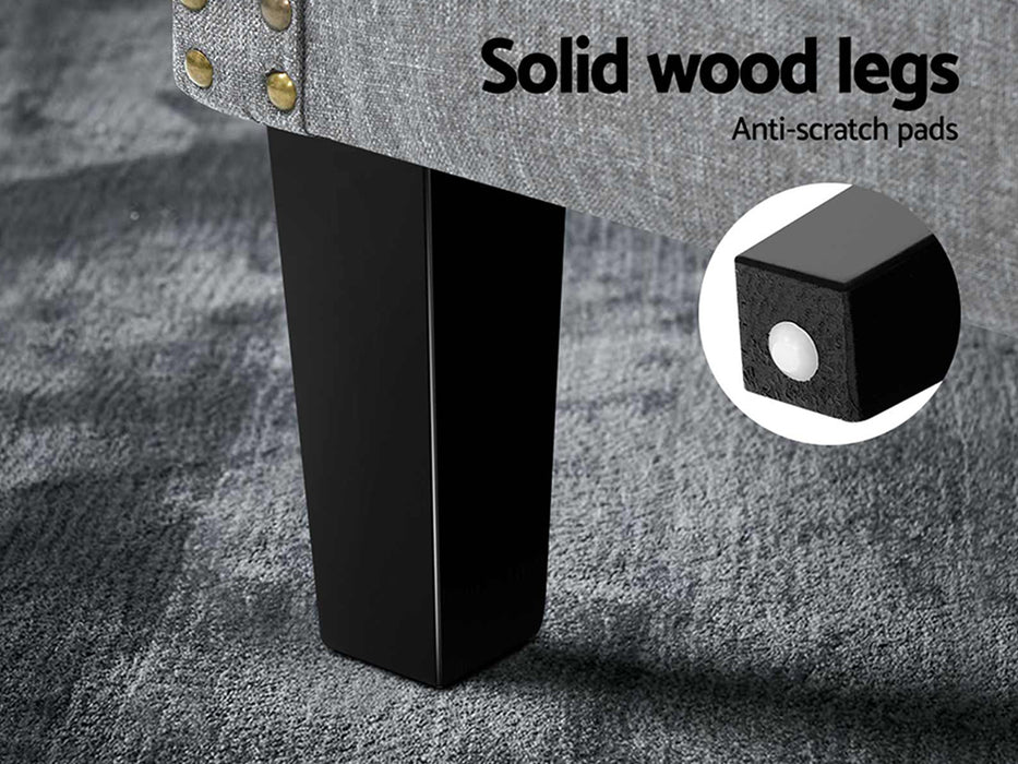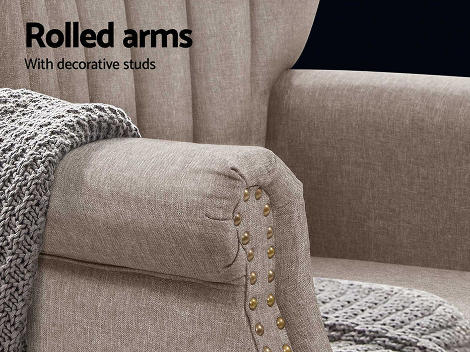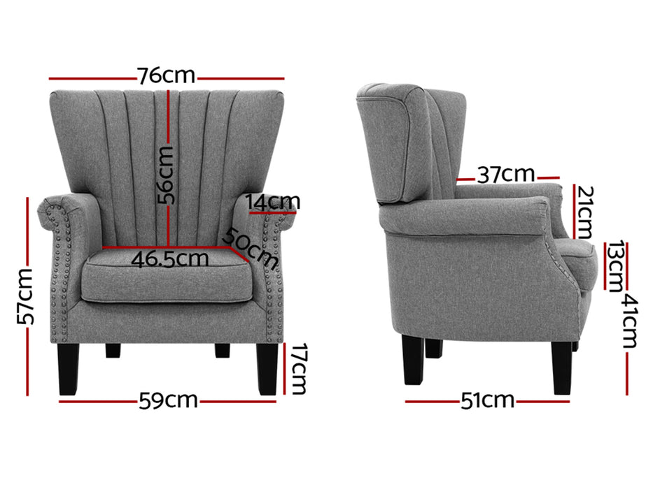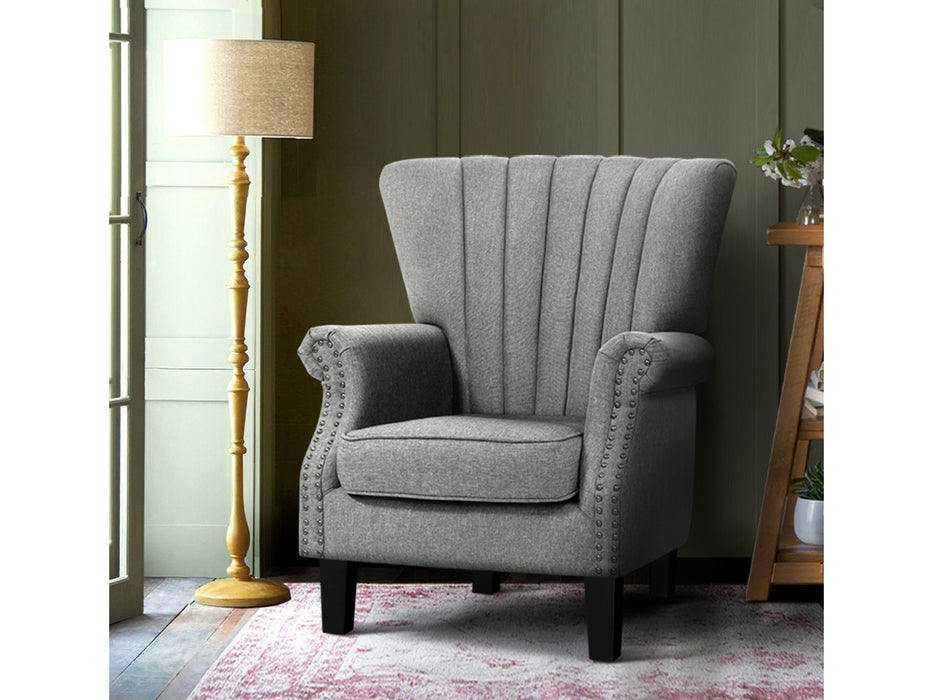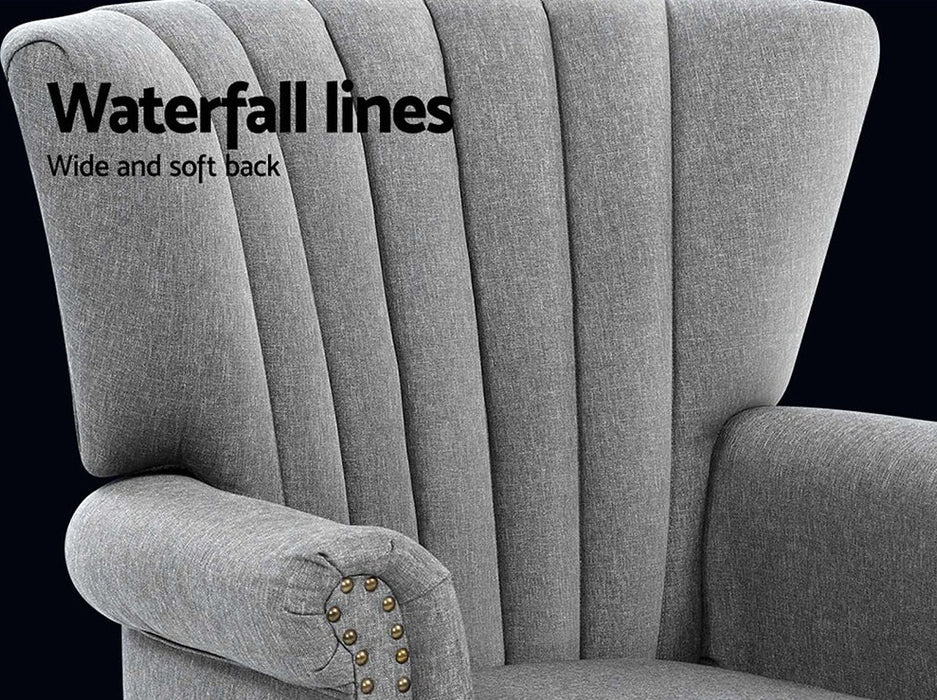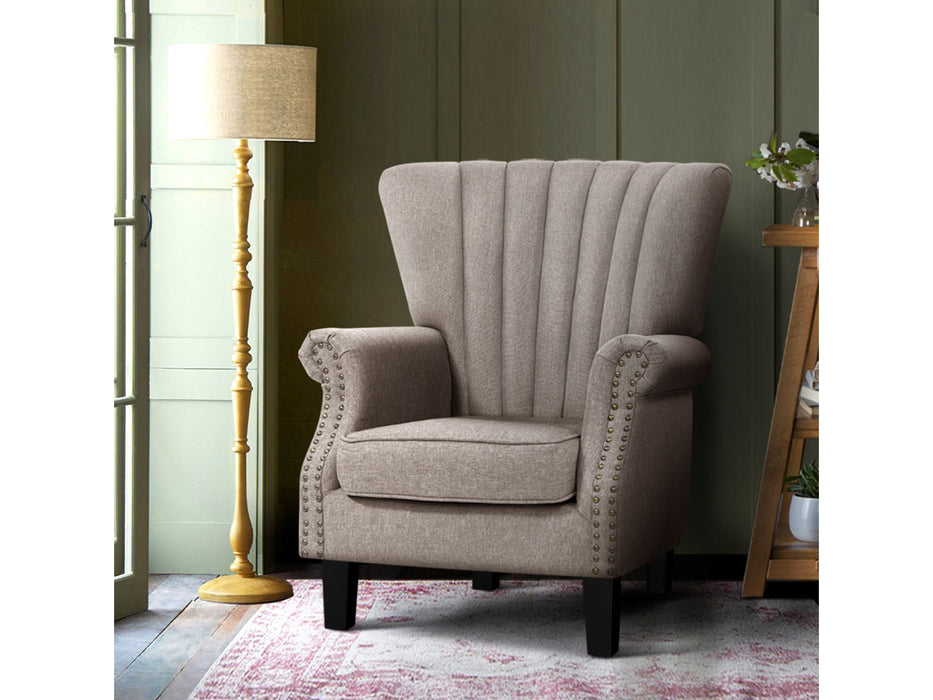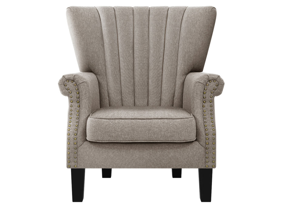 Iconic design. Timeless appeal. Our Villecey Armchair is the epitome of trendsetting style designed for the bold and passionate. The waterfall lines and button studs decoration add a certain elegance to the design, making it appear both classic and modern and suitable for any décor. Upholstered in quality linen fabric, our armchair is a full-sized chair with generous sitting room. The extra thick foam padding and wide back ensures ultimate comfort with exceptional support. The armchair feet are fitted with pads to keep your floors pristine from scratches and damage. Together with a reinforced wooden frame and sturdy tapered rubber wood legs, our armchair is guaranteed to stand up to durable use for many years to come.