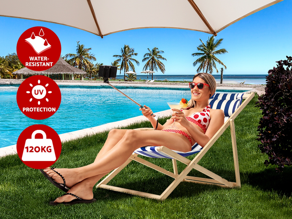 Crafted from poplar wood and finished with a clear varnish the beach chair is sturdy